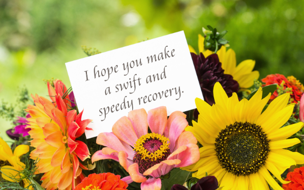 A well-chosen get-well-soon bouquet paired with a heartfelt message can be the most meaningful part of your care package. Keep your words simple but sincere. Let the recipient know you’re thinking of them and wish them a speedy recovery. If words don’t come easily, even a short note like “Wishing you comfort and strength” can have a powerful impact.